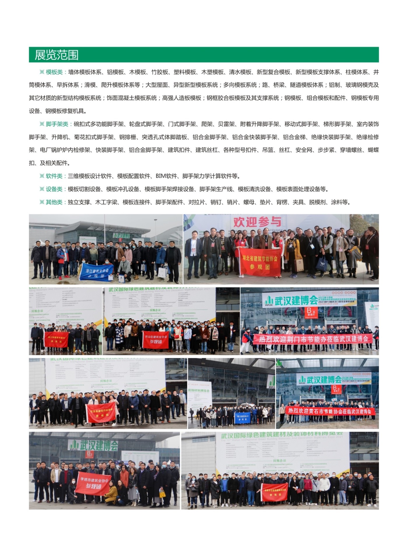 武汉模板脚手架展与同期建博会形成呼应,不仅拥有每届省市建筑业协会组团“建工单位集结号”资源,而且成为武汉建设安全协会、湖北省建筑劳务协会推荐施工技术产品窗口。