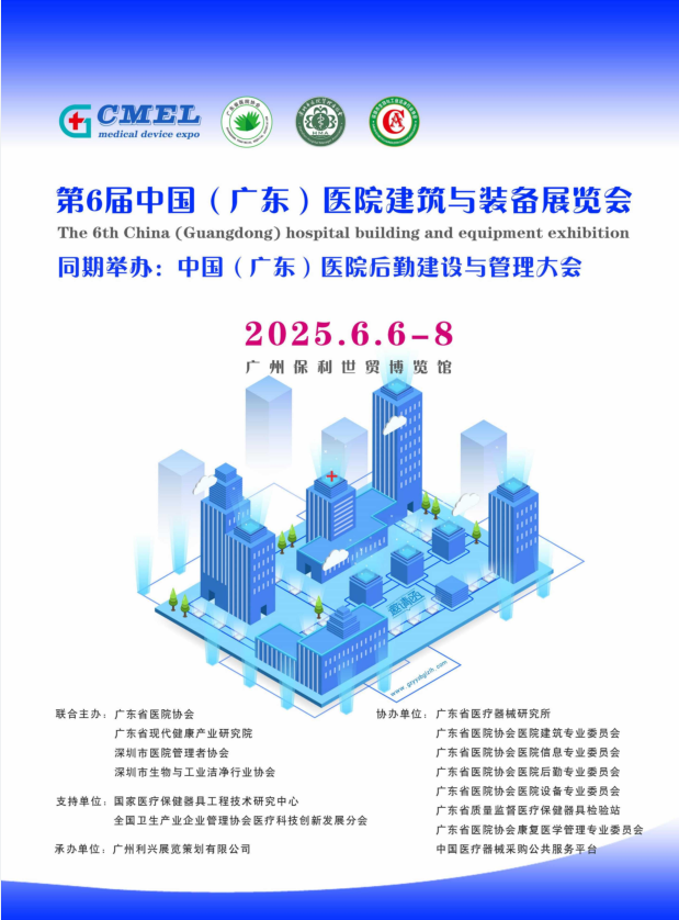 2025年6月6日-8日在保利世贸博览中心举办“第六届广东省医院建设大会暨医院建筑与装备展览会”同期举办“第二十三届中国(广东)国际医疗器械博览会形成联动效应,资源共享,展会将聚焦来自医院、医疗企业、行业经销商代理商、知识产权服务公司、设计中心、医疗投资商、原材料供应商、园区等专业人士齐聚现场,为医疗健康行业,产、学、研、全产业链协同发展提供一站式平台。