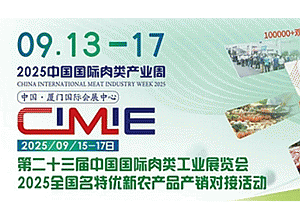 CIMIE 2025第二十三届中国国际肉类工业展览会 (暨全国名特优新农产品产销对接活动) 时 间:2025年9月13-17日 展 馆:中国·厦门国际会展中心 主办单位: 世界肉类组织、中国肉类协会