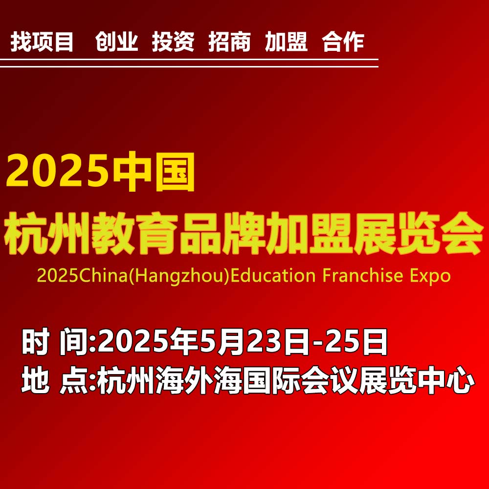 2025杭州国际教育品牌加盟展览会将于5月23-25日在杭州海外海国际会议展览中心开幕,展出范围包括语言培训、幼儿教育、素质教育、教育科技、艺术教育、专注力、智能中高考、培优教育、创新教育、智能自习室等,集中全面展示教育加盟行业最新产品、新技术、新思路及创新成果。